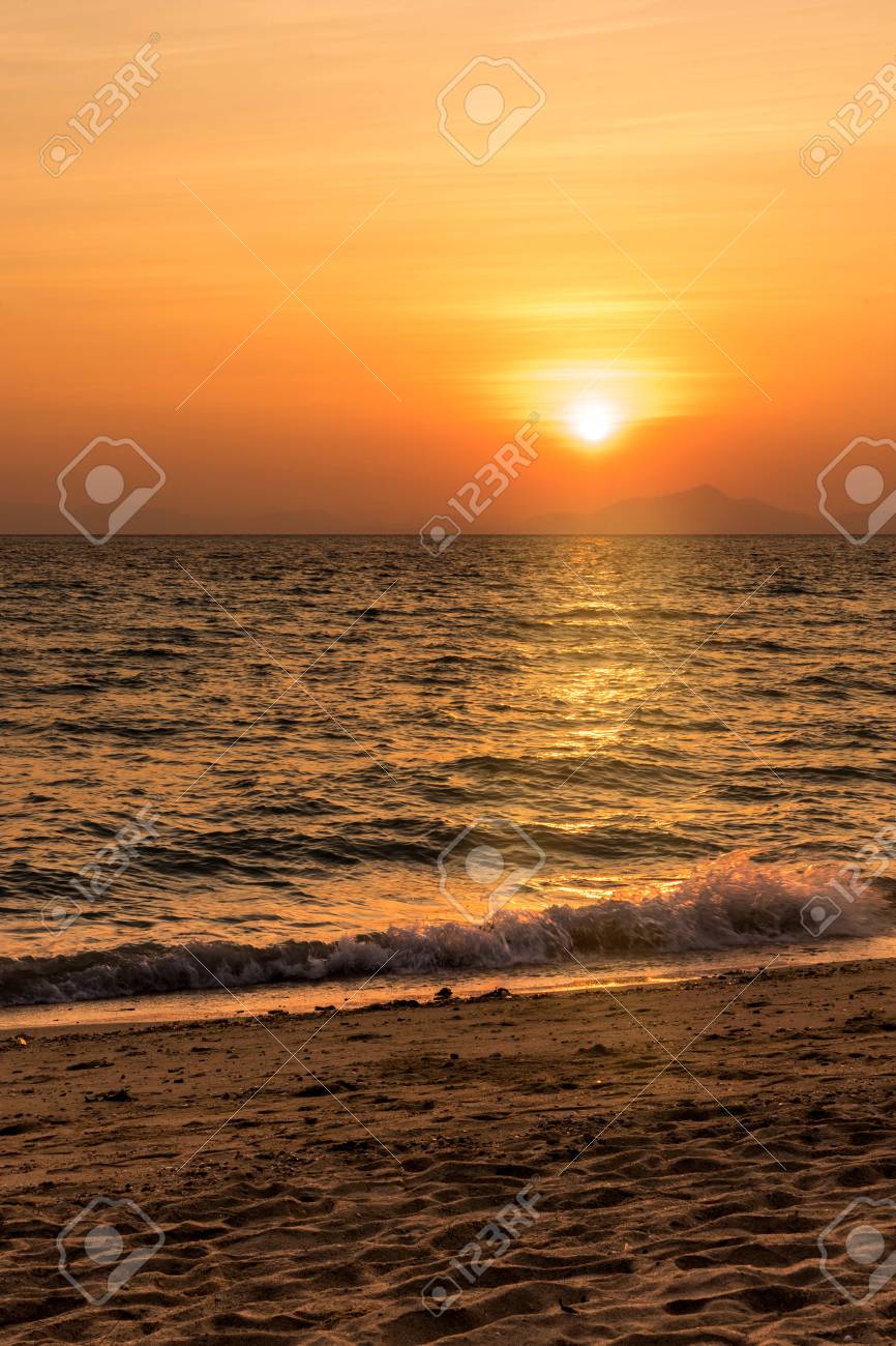 View Full Sunset On The Beach Vertical Style Nearly Evening Stock Photo