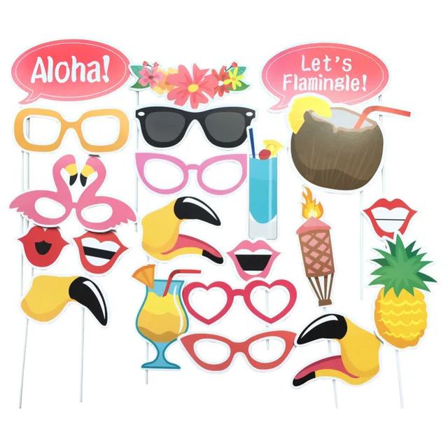 View Full 21pcs Set Flamingo Hawaii Themed Summer Party Photo Booth Props