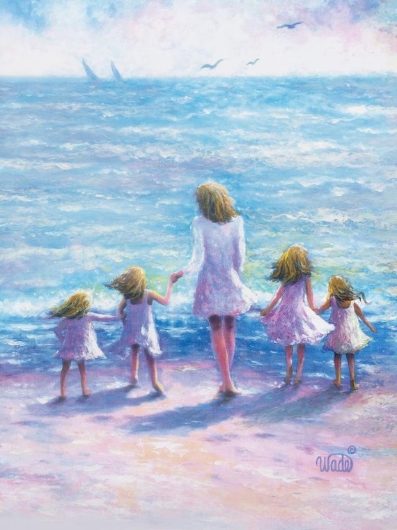 View Full Mother Four Blonde Daughters Beach Art Print Four Sisters Etsy