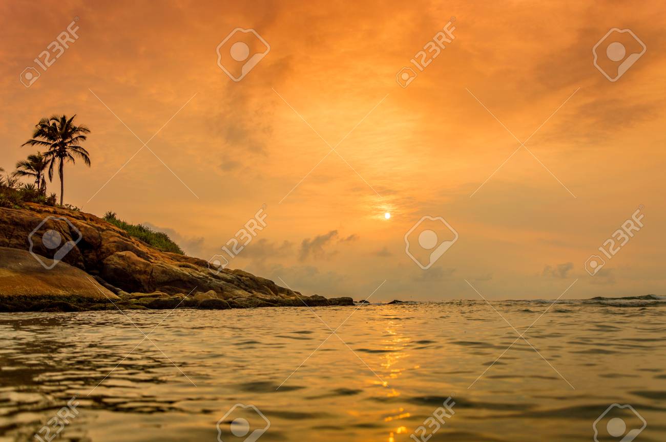 View Full Sunset At Kovalam Beach Kerala India Stock Photo Picture And