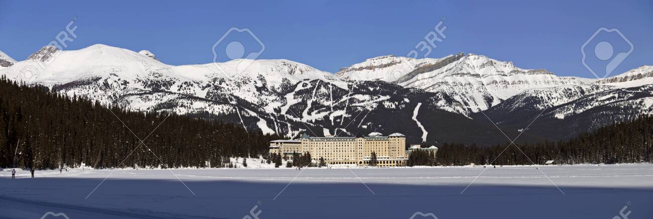 View Full Chateau Lake Louise Hotel Alberta Canada Winter Stock Photo