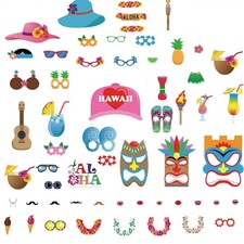 View Full 60pcs Hawaiian Photobooth Props For Luau Summer Beach Party