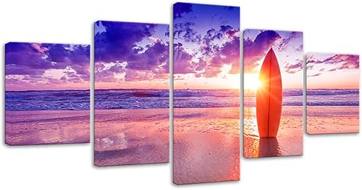 View Full Amazon Com Amemny 5 Panels Beautiful Beach Sunset Seascape