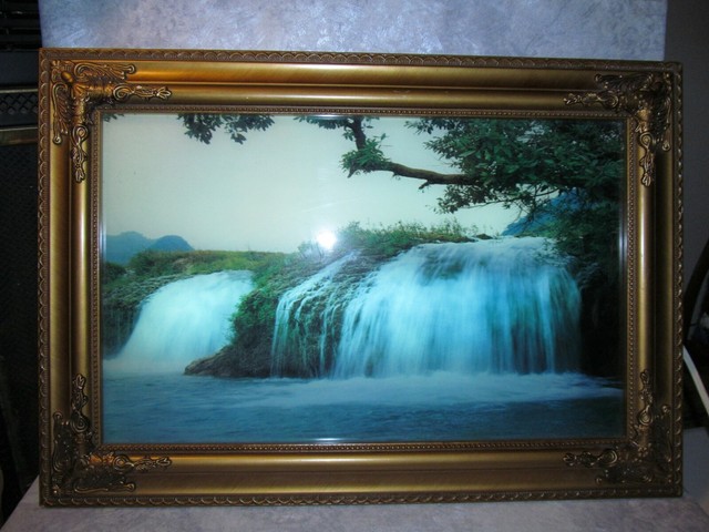 View Full Vintage Motion Light Up Waterfall Gold Framed Picture W Sound Of